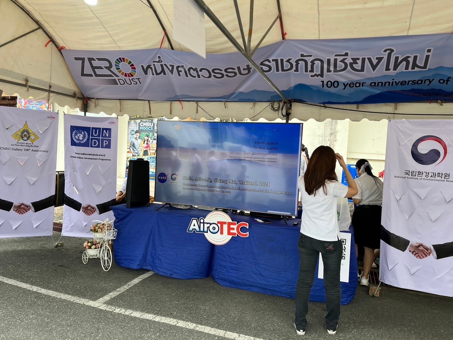 เนื่องในโอกาสที่มหาวิทยาลัยราชภัฏเชียงใหม่ครบรอบ 100 ปีในระหว่างวันที่ 3 – 6 กรกฎาคม 2567 ศูนย์ปฏิบัติการฯ AiroTEC ได้ร่วมจัดนิทรรศการแสดงผลการดำเนินงานร่วมกับเครือข่ายการดำเนินงานคือ UNDP, NIER แห่งเกาหลีใต้, GISTDA, กรมฝนหลวงและการบินเกษตร และ Dr.Hygiene Medical Products Co.,Ltd.