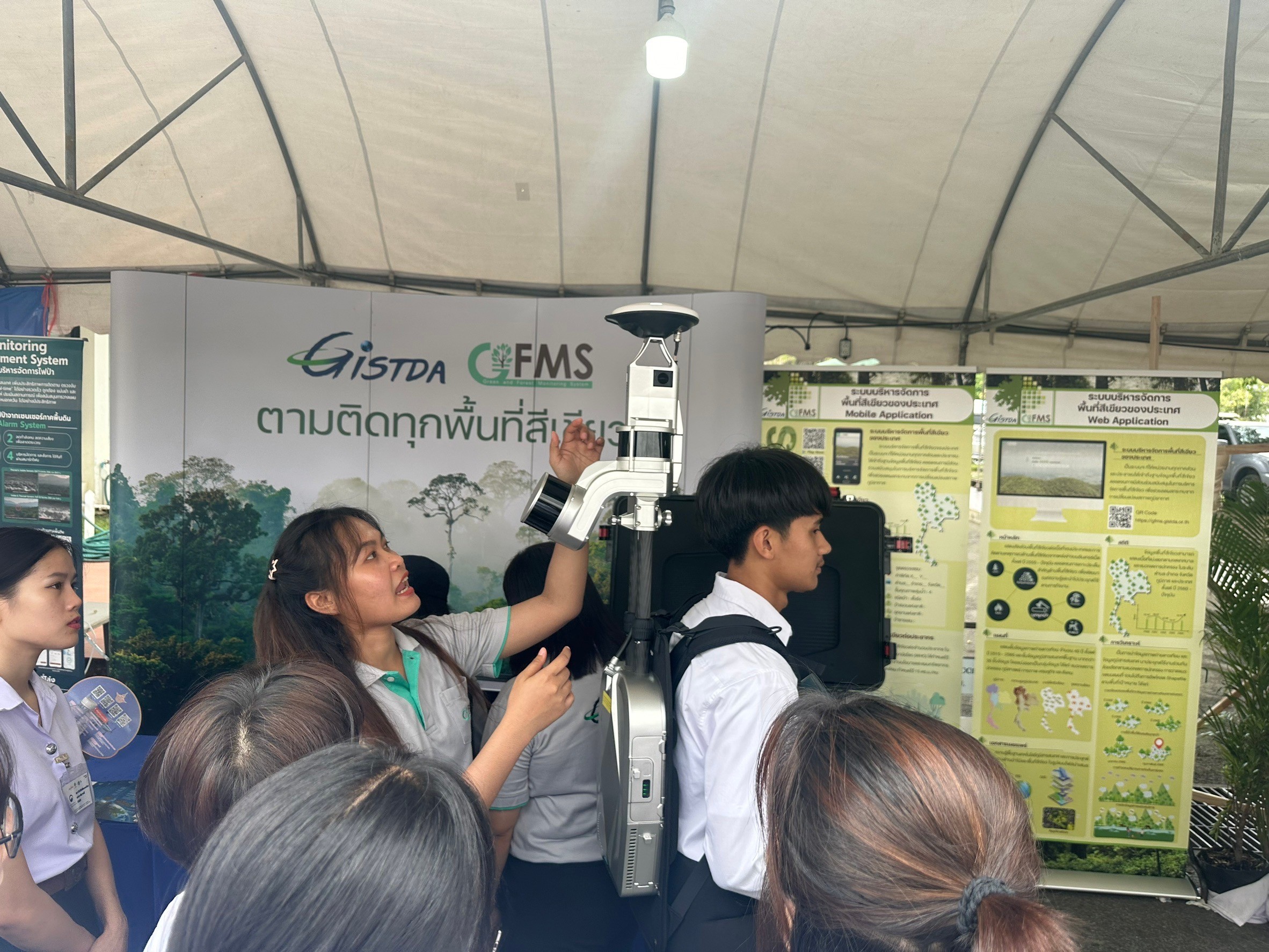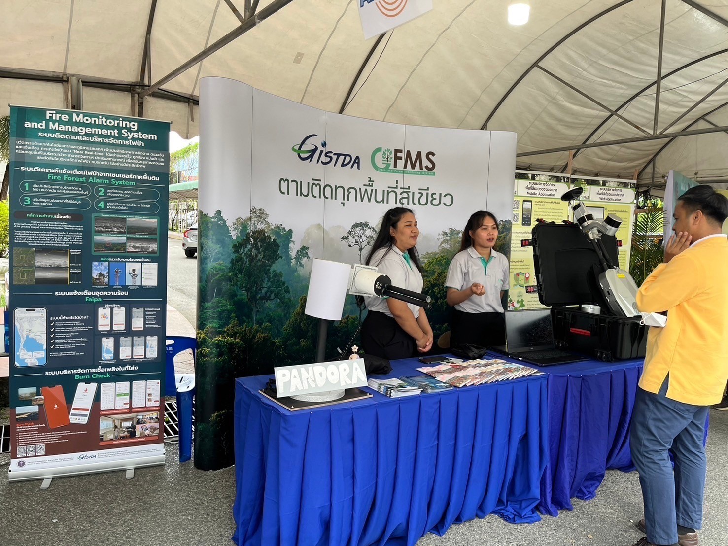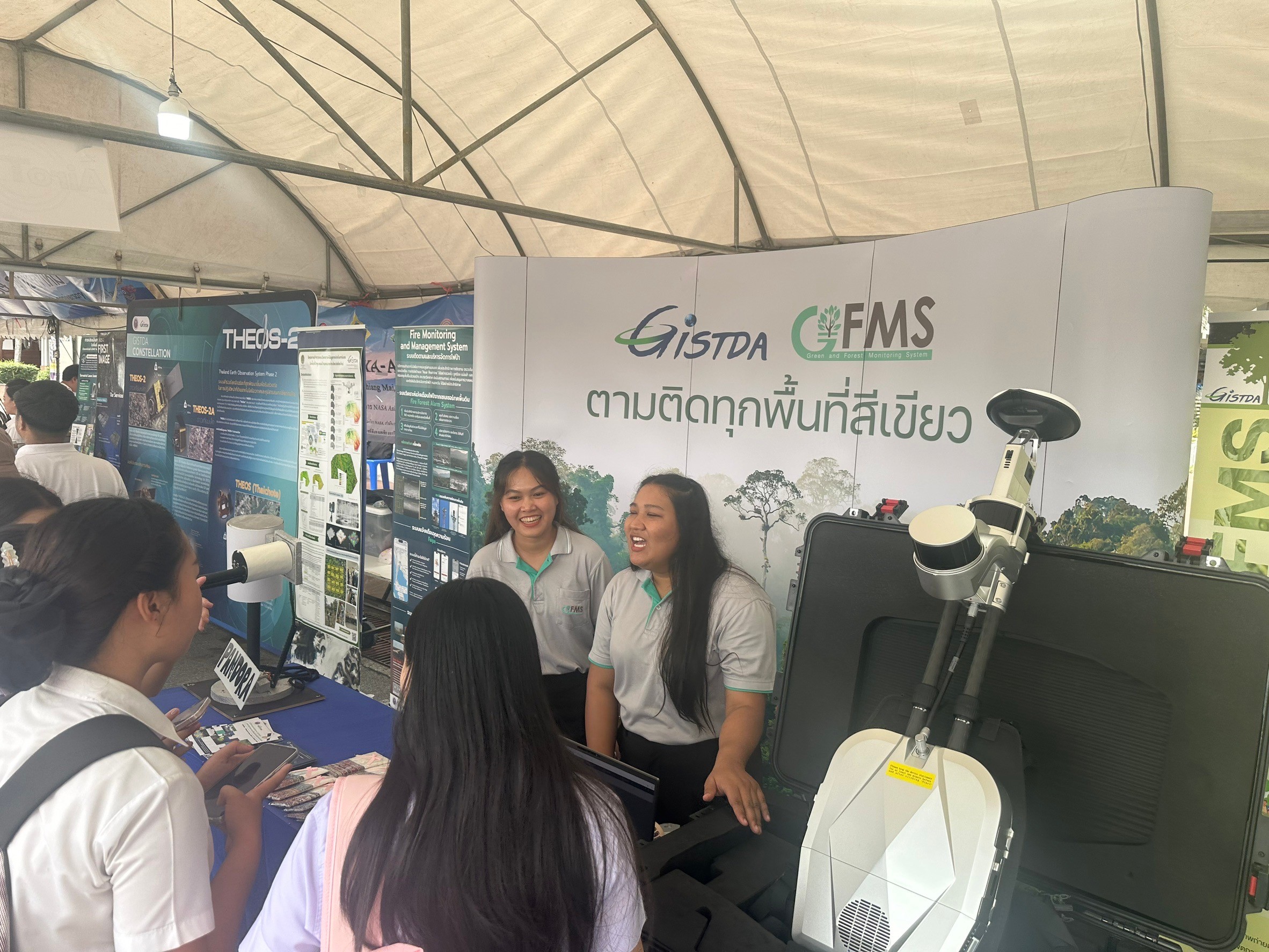 สำนักงานพัฒนาเทคโนโลยีอวกาศและภูมิสารสนเทศ (องค์การมหาชน) หรือ GISDA ในนามหน่วยงานพันธมิตรระดับประเทศสร้างประโยชน์ต่อสังคมในวงกว้างในเรื่องไฟป่า หมอกควัน การลดภาวะโลกร้อน การสำรวจและวิเคราะห์คาร์บอนเครดิตของต้นไม้โดยใช้ข้อมูลภูมิสารสนเทศและเทคโนโลยีดาวเทียม ซึ่งในนิทรรศการได้นำเครื่องมือไลดาร์ (LiDAR) เพื่อสร้างแบบจำลอง 3 มิติของต้นไม้และป่าไม้เพื่อประโยชน์ในการคำนวนการกักเก็บคาร์บอน นอกจากนั้นยังได้จัดแสดงแบบจำลองดาวเทียม Theos-1 และ Theos-2 ซึ่งเป็นดาวเทียมสำรวจทรัพยากรธรรมชาติดวงแรกของไทยที่ใช้ประโยชน์ได้อย่างหลากหลายเพื่อเป็นข้อมูลวิเคราะห์ที่สำคัญที่ใช้ในการพัฒนาประเทศชาติ