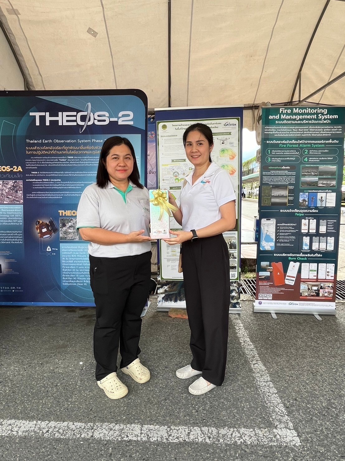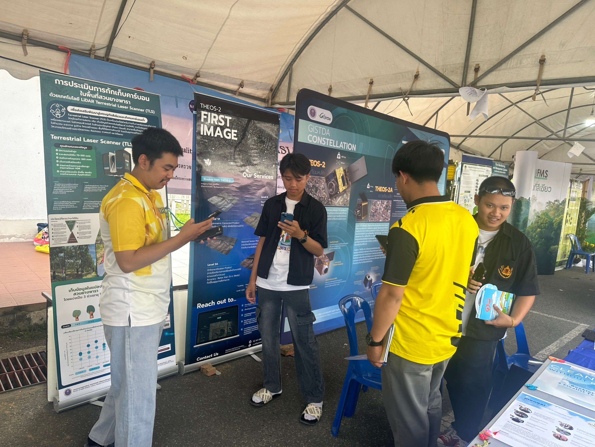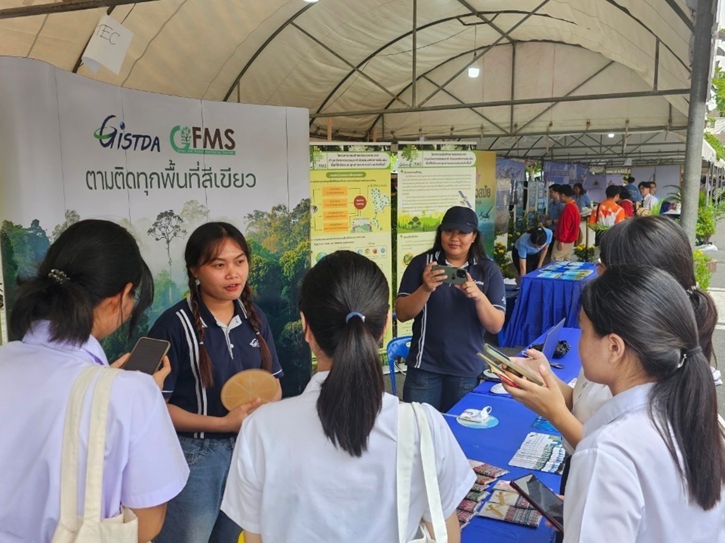 สำนักงานพัฒนาเทคโนโลยีอวกาศและภูมิสารสนเทศ (องค์การมหาชน) หรือ GISDA ในนามหน่วยงานพันธมิตรระดับประเทศสร้างประโยชน์ต่อสังคมในวงกว้างในเรื่องไฟป่า หมอกควัน การลดภาวะโลกร้อน การสำรวจและวิเคราะห์คาร์บอนเครดิตของต้นไม้โดยใช้ข้อมูลภูมิสารสนเทศและเทคโนโลยีดาวเทียม ซึ่งในนิทรรศการได้นำเครื่องมือไลดาร์ (LiDAR) เพื่อสร้างแบบจำลอง 3 มิติของต้นไม้และป่าไม้เพื่อประโยชน์ในการคำนวนการกักเก็บคาร์บอน นอกจากนั้นยังได้จัดแสดงแบบจำลองดาวเทียม Theos-1 และ Theos-2 ซึ่งเป็นดาวเทียมสำรวจทรัพยากรธรรมชาติดวงแรกของไทยที่ใช้ประโยชน์ได้อย่างหลากหลายเพื่อเป็นข้อมูลวิเคราะห์ที่สำคัญที่ใช้ในการพัฒนาประเทศชาติ