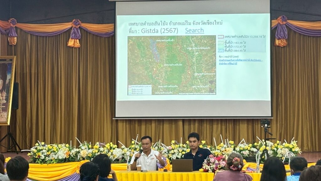 เมื่อวันศุกร์ที่ 29 สิงหาคม 2568 ที่ผ่านมา ศูนย์ปฏิบัติการ AiroTEC นำโดย ผศ.ดร.รัชพล สัมพุทธานนท์ ผู้อำนวยการ AiroTEC พร้อมด้วยทีมงาน ผศ.ดร.ภัทรานิษฐ์ กิตติ์ธิตินันท์ และ นางสาวพัชรินท์ สมพุฒิ ได้ทำการลงพื้นที่ เทศบาลตำบลสันโป่ง อำเภอแม่ริม จังหวัดเชียงใหม่. ในครั้งนี้ ทีมงานได้จัดการบรรยายเชิงปฏิบัติการเรื่อง “การสำรวจต้นไม้เพื่อประเมินการกักเก็บคาร์บอนด้วยแผนที่ระบบสารสนเทศภูมิศาสตร์ (GIS) เพื่อเป็นต้นแบบในการอนุรักษ์ทรัพยากรป่าไม้ในชุมชนอำเภอแม่ริม จังหวัดเชียงใหม่”