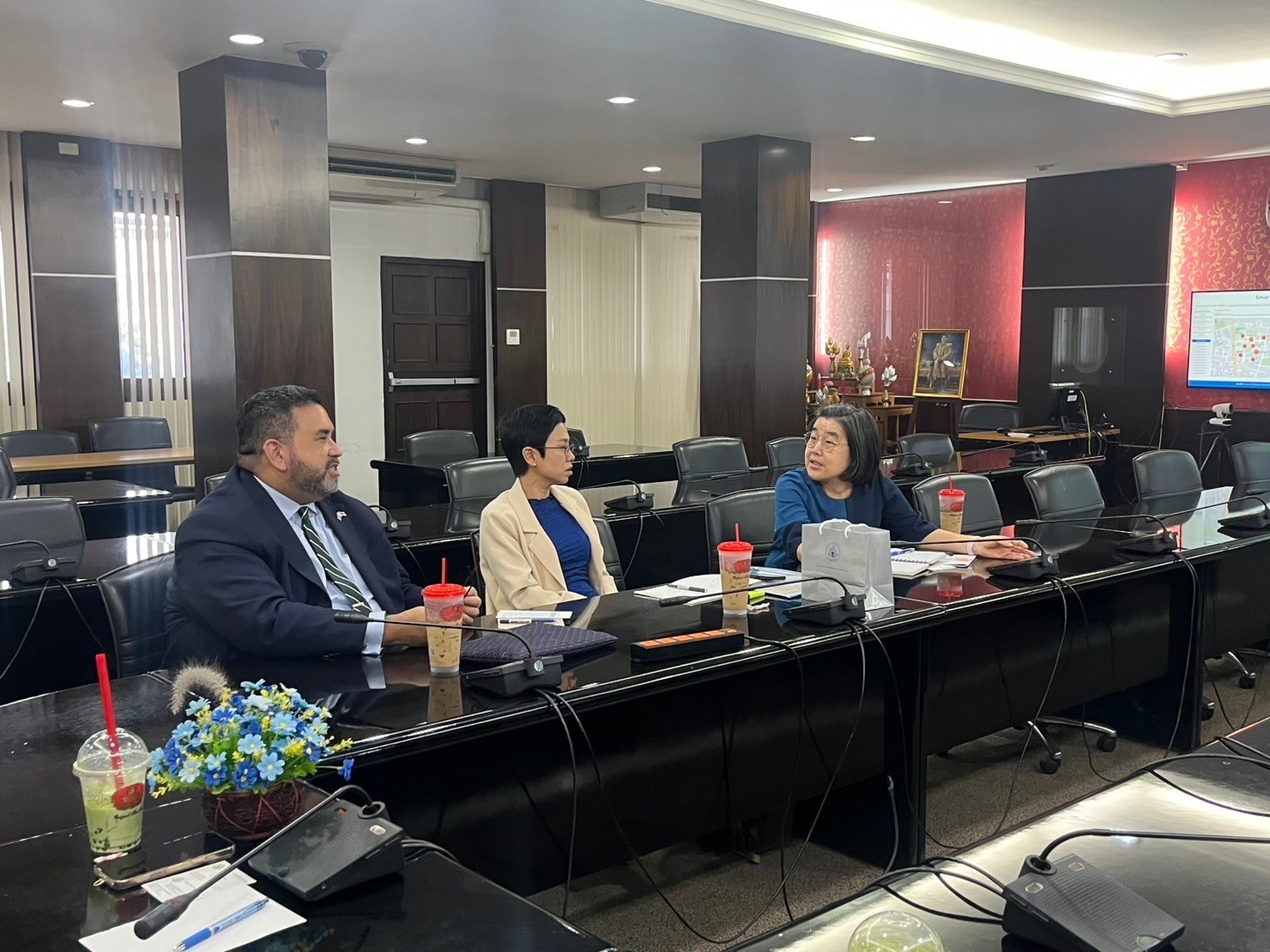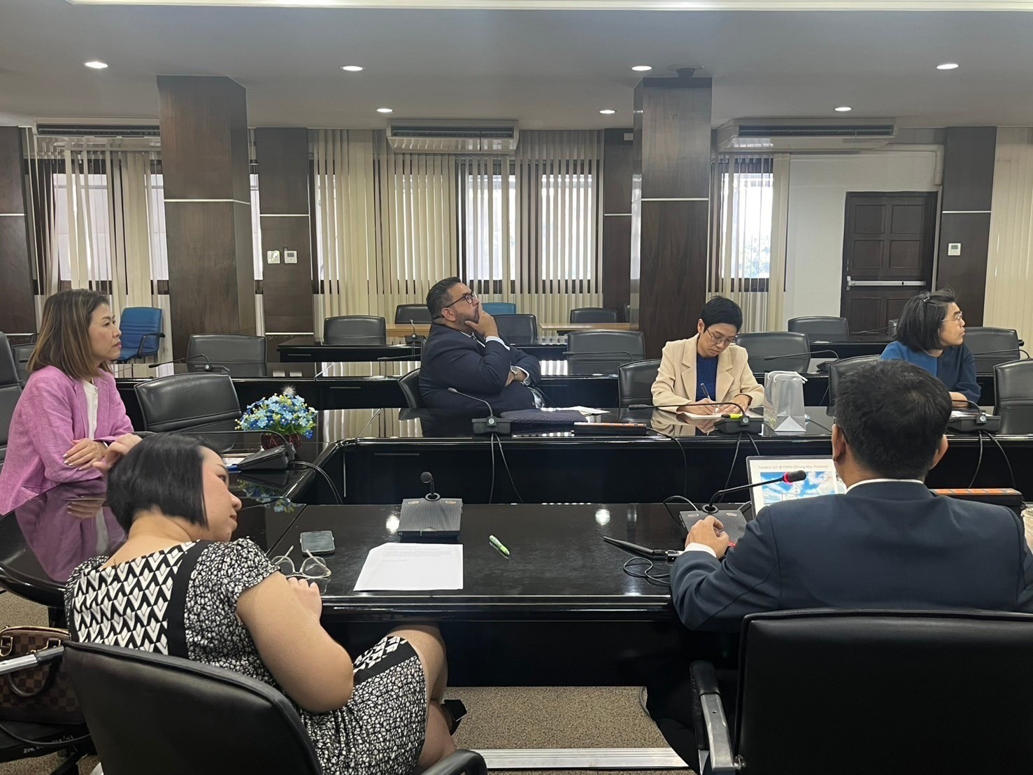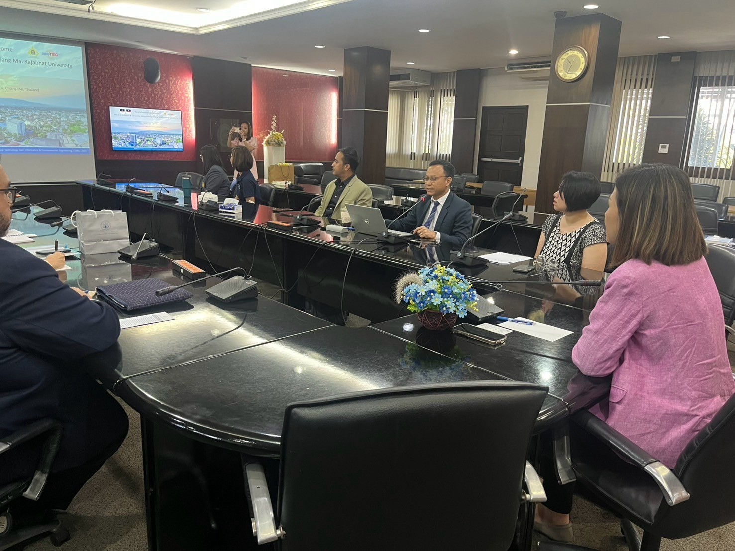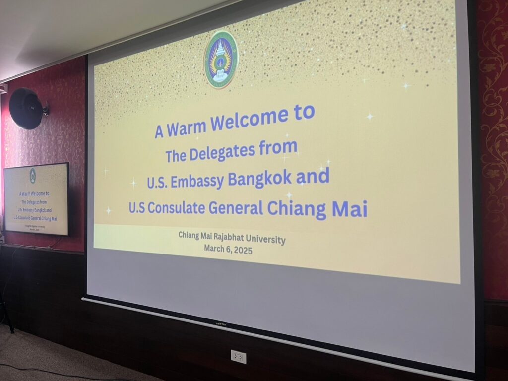 เมื่อวันที่ 6 มีนาคม พ.ศ. 2568 ศูนย์ปฏิบัติการฯ AiroTEC และ สำนักงานวิเทศสัมพันธ์ มหาวิทยาลัยราชภัฏเชียงใหม่ ได้ร่วมให้การต้อนรับ คุณเจมส์ เชีย (Mr. James Shea) เลขานุการเอกฝ่ายเศรษฐกิจ สถานเอกอัครราชทูตสหรัฐอเมริกาประจำประเทศไทย, คุณวรารัตน์ เขมังกรณ์ (Ms. Vararat Khemangkorn) ผู้เชี่ยวชาญด้านเศรษฐกิจ สำนักงานฝ่ายเศรษฐกิจ สถานเอกอัครราชทูตสหรัฐฯ กรุงเทพฯ, คุณเทรซี่ พิคชาโน (Ms. Traci Picciano) ผู้ช่วยฝ่ายเศรษฐกิจและการเมือง สถานกงสุลใหญ่สหรัฐฯ เชียงใหม่ และ คุณวารุณี ต่อศรีเจริญ (Ms. Varunee Torsricharoen) ผู้เชี่ยวชาญด้านเศรษฐกิจและพาณิชย์ สถานกงสุลใหญ่สหรัฐฯ เชียงใหม่ ในโอกาสหารือเกี่ยวกับการขับเคลื่อนโครงการด้านคุณภาพอากาศและการเปลี่ยนแปลงสภาพภูมิอากาศ ในจังหวัดเชียงใหม่และประเทศไทย โดยจัดขึ้น ณ ห้องเอื้องสายส่องแสง สำนักดิจิทัลเพื่อการศึกษา มหาวิทยาลัยราชภัฏเชียงใหม่ อำเภอเมืองเชียงใหม่