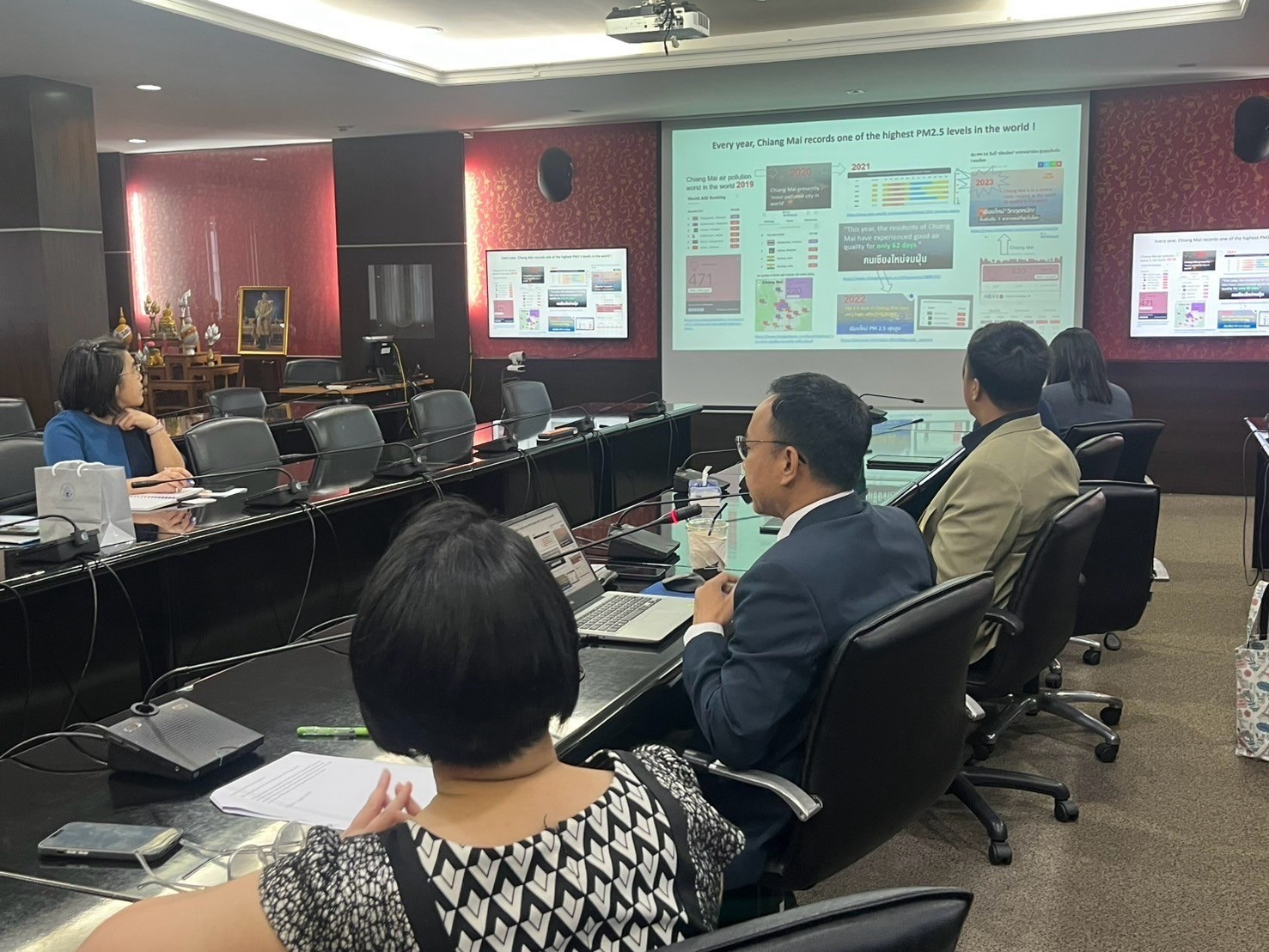 นอกจากนี้ AiroTEC ได้นำเสนอ เครื่องมือและวิธีการใหม่ ในการวิเคราะห์พื้นที่เผาไหม้ การติดตามและเฝ้าระวังฝุ่นควัน PM 2.5 การแปลผลข้อมูลเพื่อสื่อสารกับประชาชน รวมถึงการเผยแพร่เทคโนโลยีผลิตอากาศสะอาดในห้องระบบแรงดันอากาศบวกแบบ DIY (Air Pressure Room) ซึ่งออกแบบให้ประชาชนสามารถเข้าถึงได้ง่าย มีต้นทุนต่ำแต่มีประสิทธิภาพสูง โดย ผศ.ดร.ภัทรานิษฐ์ กิตติ์ธิตินันท์ ได้ให้รายละเอียดเพิ่มเติมเกี่ยวกับองค์ประกอบของระบบดังกล่าว ทั้งนี้ ผู้แทนจากสถานเอกอัครราชทูตสหรัฐฯ และสถานกงสุลใหญ่สหรัฐฯ เชียงใหม่ ได้แสดงเจตนารมณ์ที่จะสนับสนุนความร่วมมือกับ AiroTEC และ มร.ชม. ในโครงการที่ก่อให้เกิดประโยชน์เชิงวิชาการและประโยชน์ต่อสังคมต่อไป