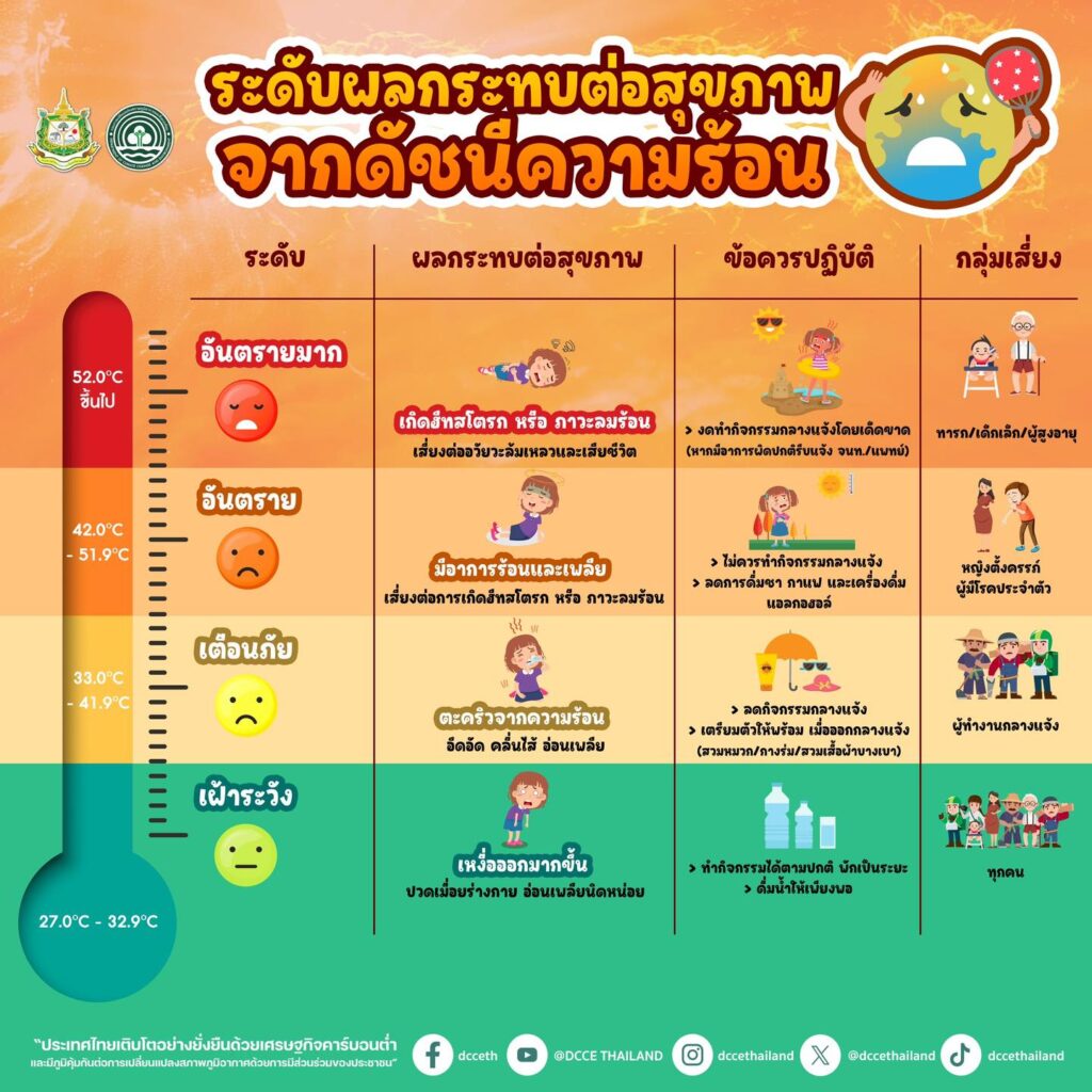 ระดับผลกระทบต่อสุขภาพจากดัชนีความร้อน