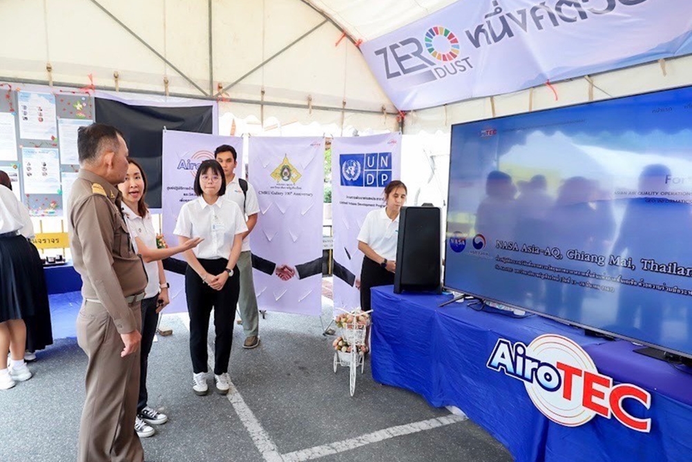 On July 4, 2024, General Dapong Ratanasuwan, Privy Councillor, honored AiroTEC CMRU by visiting their booth showcasing the operations and activities of the Asian Air Quality Operations Center by Space Technology, Geo-informatics & Environmental Engineering (AiroTEC) at Chiang Mai Rajabhat University. The visit was part of the “Zero Dust A Century of Chiang Mai Rajabhat University” campaign, celebrating the university’s centennial anniversary under the theme “Stream of Wisdom Towards Sustainable Development.”