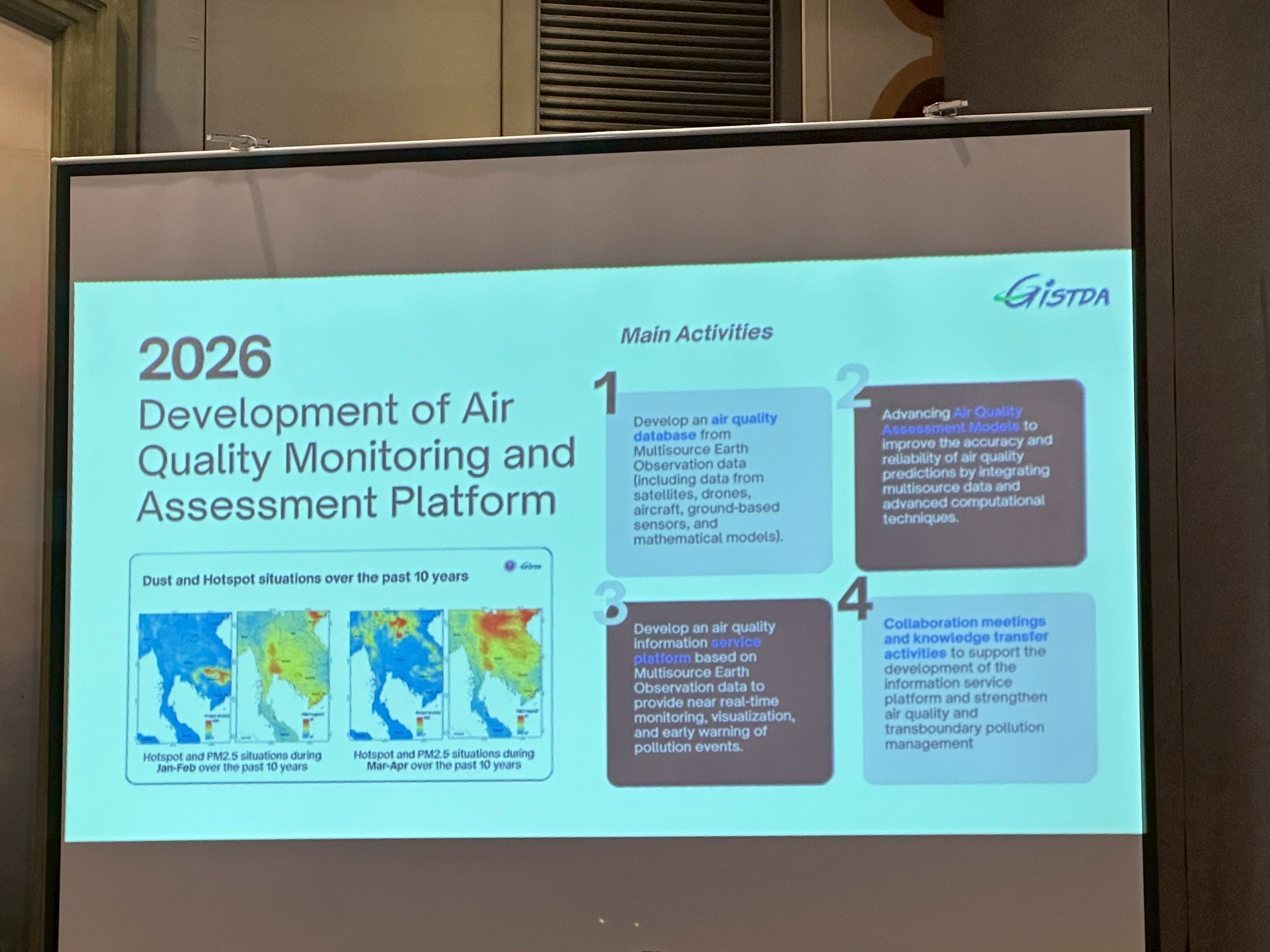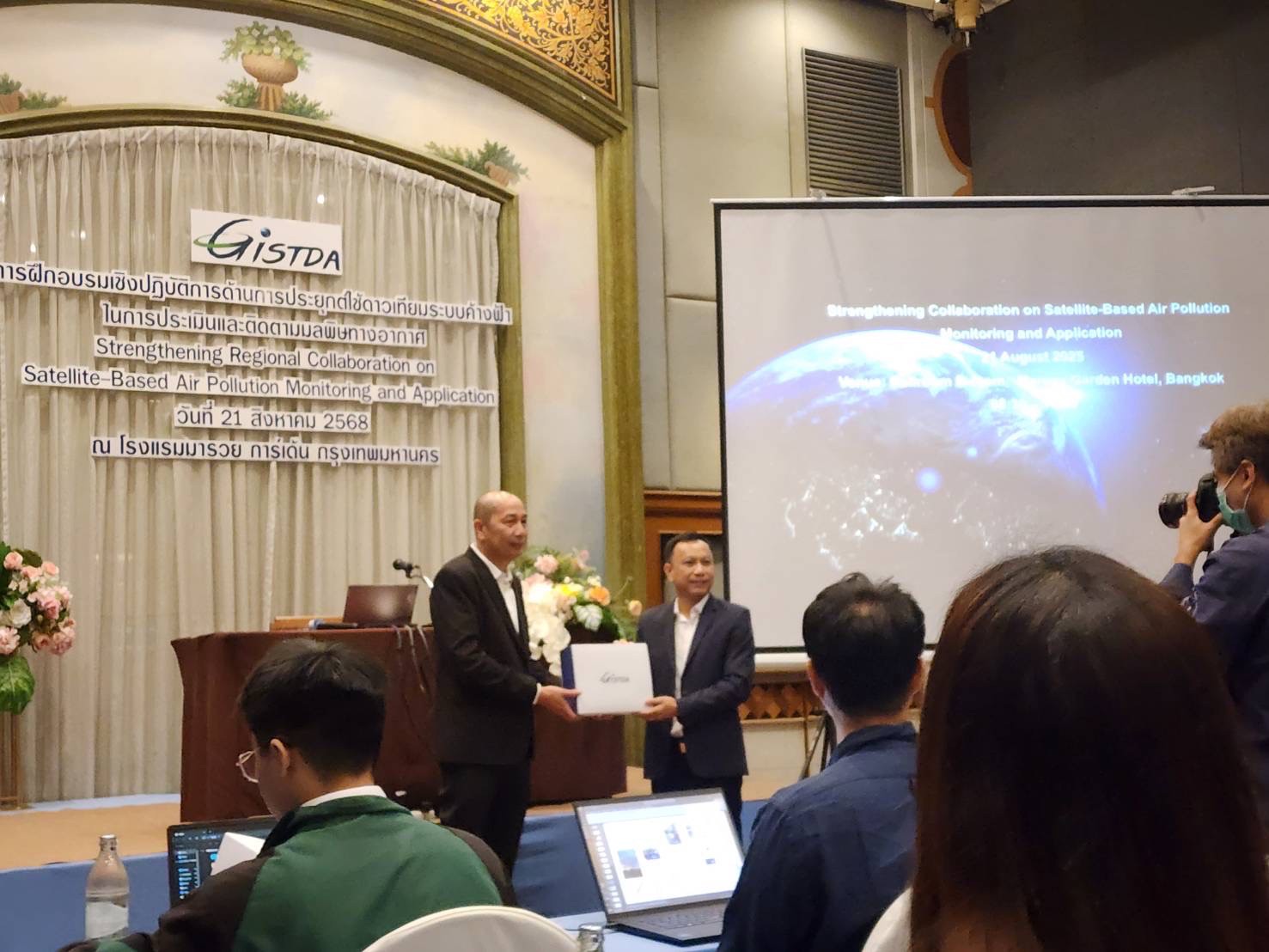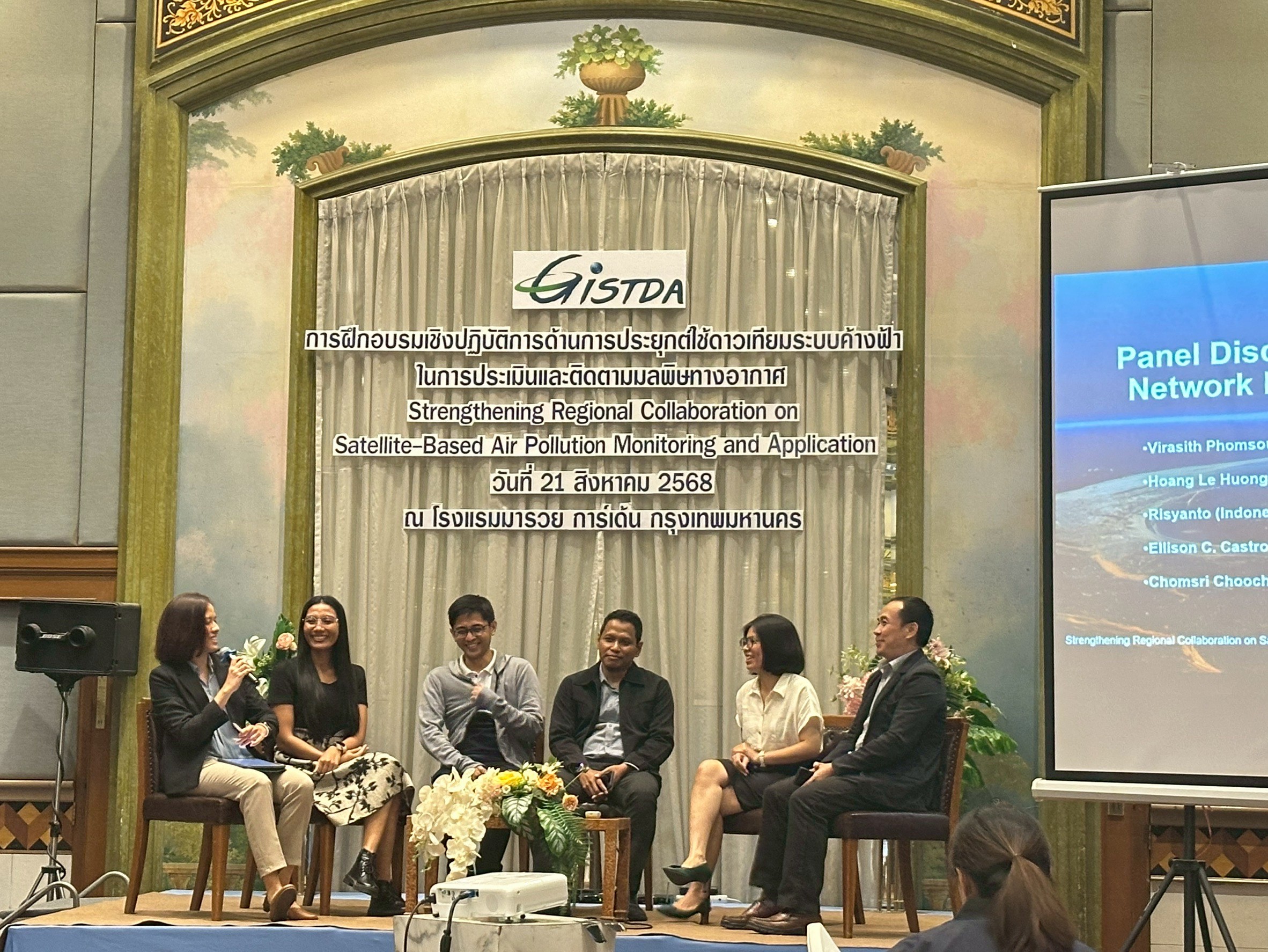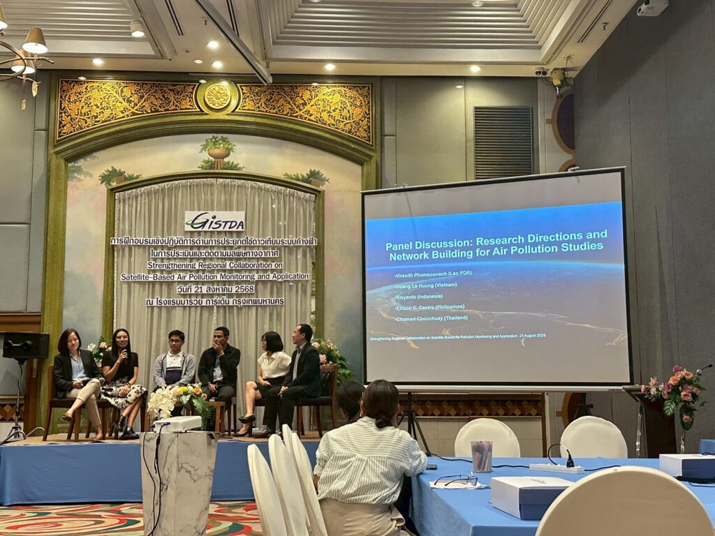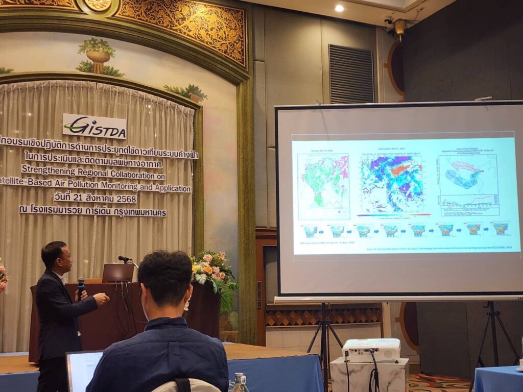 On 21–22 August 2025, the Geo-Informatics and Space Technology Development Agency (GISTDA) organized the international workshop “Strengthening Regional Collaboration on Satellite-Based Air Pollution Monitoring and Application” at the Maruay Garden Hotel, Bangkok, and Silpakorn University, Nakhon Pathom Campus.
