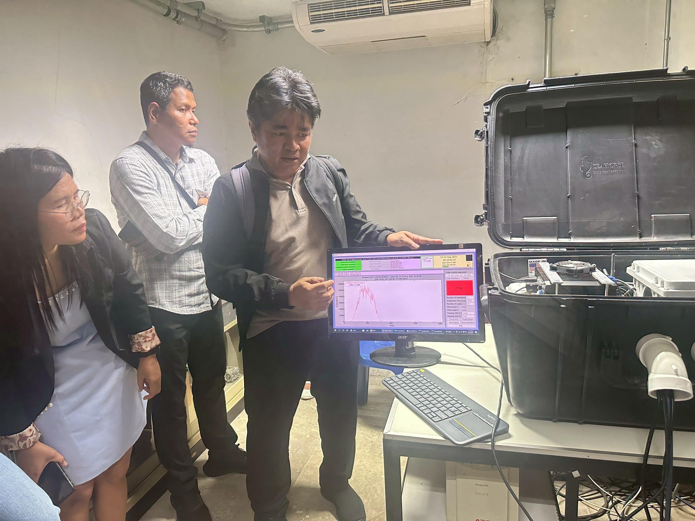 In addition, participants had the opportunity to visit the newly installed Pandora monitoring station at the Department of Physics, Faculty of Science, Silpakorn University, Nakhon Pathom, which has become another key site in Thailand’s air quality monitoring network. This station further strengthens the country’s data infrastructure and research collaborations with both domestic and international partners.